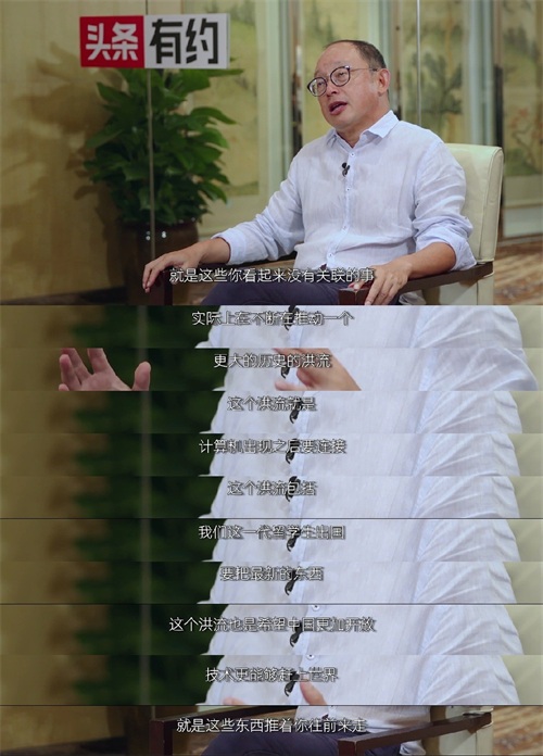 这些看起来没有关联的事,在不断地推动一个更大的历史洪流,这个洪流就是计算机出现的时候会要连接;这个洪流就是我们这一代留学生出国,要把最新的东西带回到自己的国家;这个洪流也是希望中国更加开放,技术能够赶上世界。我觉得这些东西推着你往前走,个人在这里扮演了很小的一个角色,不是丁健,不是我,也会有别的人来拥抱互联网的潮流,使中国和世界能连得更远。