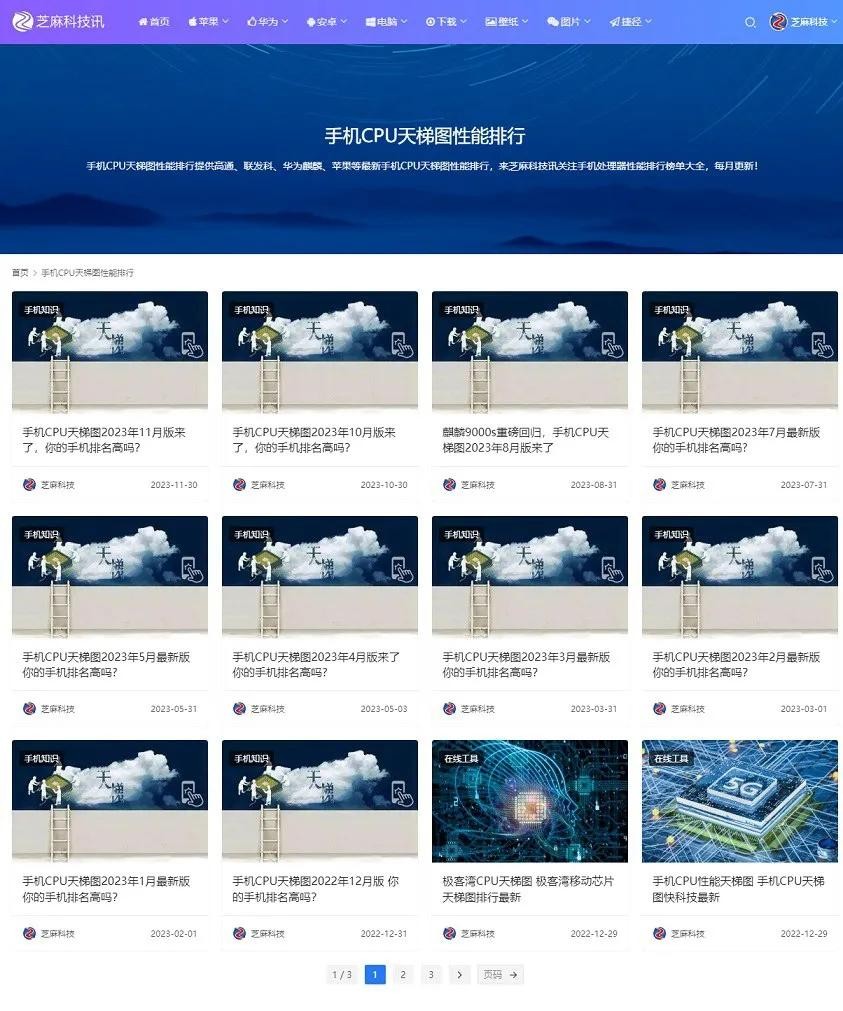 芝麻科技讯官网已经上线了天梯图文章合集,汇总了每期数据以及极客湾和快科技天梯第三方数据入口等等。