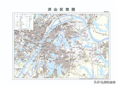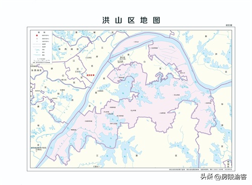 洪山区位于武汉市东南部,因境内有洪山而得名。全区自西向北呈半圆形,环抱武昌、青山两区。东抵鄂州市,南与江夏区接壤,东北与新洲区隔江相望。地理位置为东经 114 °7′~114 °38′,北纬 30 °28′~30 °42′。区境内地貌以平原为主,山丘湖泊纵横,自然资源丰富。境内桂子山、喻家山、南望山、九峰山、花山、白浒山等山峦起伏,东湖、南湖、青菱湖、汤逊湖、严西湖、严东湖、黄家湖等湖泊密布,巡司河、青菱港、建设港、和平港、青山港、北湖港等河港纵横交错。