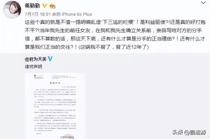 为了能够摆脱嫌疑,蒋勤勤也急忙发文澄清。