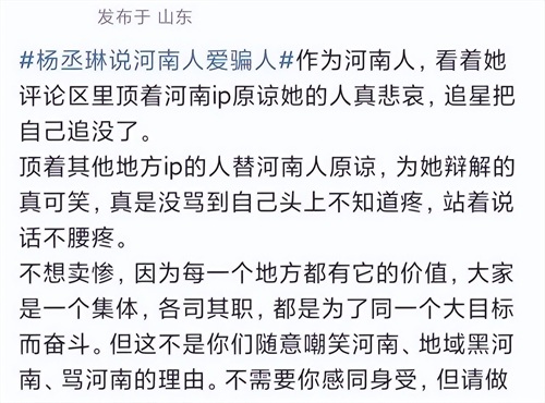 杨丞琳近期的一次言论虽引发了一定争议,但也有不少人站出来为她辩护。这些支持者认为,杨丞琳的言论仅仅是一种幽默的表达,并无恶意。他们提到,杨丞琳之前不仅一次为河南地区做出过捐款,还在多个场合表达过对河南的喜爱。