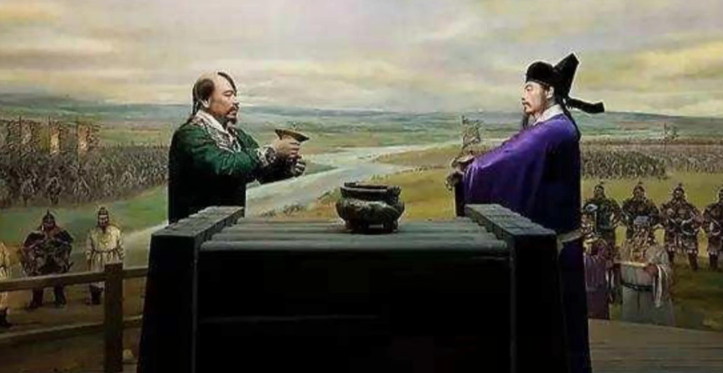 宋真宗经寇准、高琼的劝说,来到了黄河南岸的澶州南城。澶州南、北两城之间架着浮桥,宋真宗不想过去。高琼命令部下把车驾移过来,请宋真宗上车。