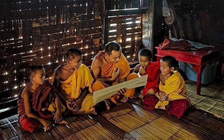 有一次母亲带着她去寺庙上香,她好奇地看着僧人师傅们诵经,就问母亲他们在读什么,为什么老师没有教过我?