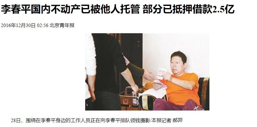 北京青年报——李春平国内不动产已被他人托管 部分已抵押借款2.5亿