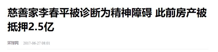 环球网——慈善家李春平被诊断为精神障碍 此前房产被抵押2.5亿