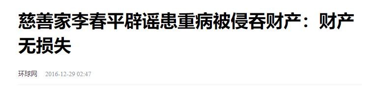 环球网——慈善家李春平辟谣患重病被侵吞财产:财产无损失