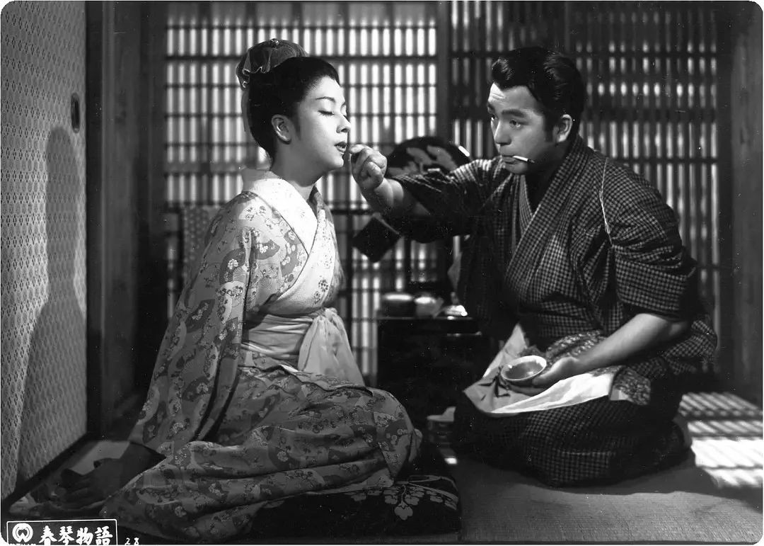 关于京町子,还必须要提两部片子,一部是其演技真正得以发挥的吉村公三郎《虚伪的盛装》(1951),影片原名《肉体的盛装》,以沟口健二《祗园姐妹》的剧本名气大涨的新藤兼人负责编剧,京町子饰演的京都烟花柳巷宫川町艺伎君蝶,跌跌撞撞,妩媚动人。