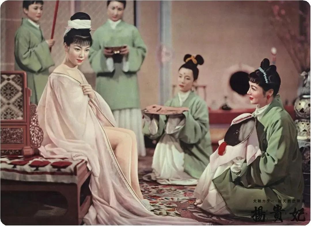第二部则是沟口健二的《杨贵妃》,不得不承认在日本所有大女优中,能演绎富贵的中国杨贵妃,也就京町子一人,她的扮相、体态相比李翰祥镜头里的“杨贵妃”李丽华,竞不逊色。