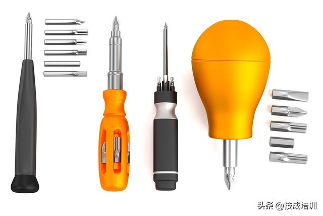 螺丝刀:螺丝刀有不同类型的头部,如平头和十字头,用于拧紧或松开螺丝。在电工工作中,常用的是绝缘螺丝刀,以确保安全。