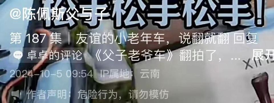 陈佩斯父与子抖音号于2024年10月5日发布的关于“友谊的小老年车”的视频