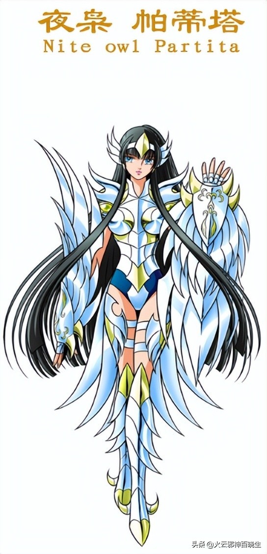 夜枭帕蒂塔出自《冥王神话》,她和冥斗士天魁星杳马生下了前代弑神大魔王天马座圣斗士天马,天马就是上次伤到冥王哈迪斯的圣斗士,也有设定说天马就是星矢的前世。