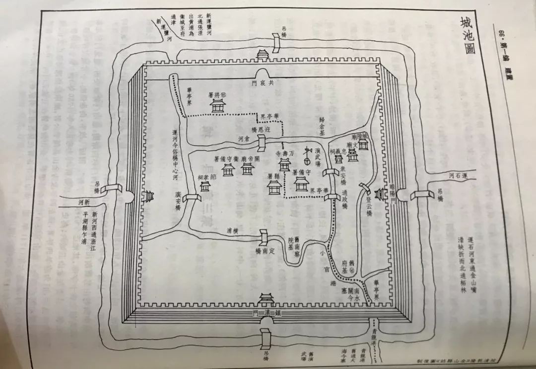 据志书记载,金山卫古城,初为土筑方城,明永乐16年(公元1418年),改砌砖墙,造起楼橹;明化成3年(公元1467年),城墙又护以石块。正德年间,金山卫城周长12里300步有余,高2丈8尺,周围绕有护城河,全长13里300步。明樊莹《登金山卫城楼》诗曰:“孤城周匝倚江干,大海微茫入望宽;蜃气丰收初霁日,潮声渐细已迥澜。海盐有利民空羡,谷粟无功我愧餐;独喜四夷时贡献,将军不用事征鞍。”足以描绘了金山卫古城的磅礴气势。