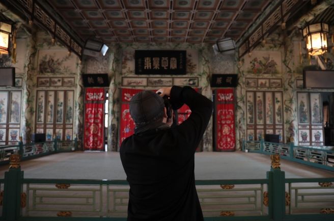 在恭王府中的Lili静静地端坐在椅子上,屋外的人们正透过窗户向内窥探。叶锦添用Lili传达出北京给他的感受,“Lili在欧洲容易跟当地人联接在一起,但是在国内,人们往往需要花一段时间去理解和接纳这种艺术形式。这就像是隔着层纱,充满好奇地透过窗户往里面窥探的感觉。”