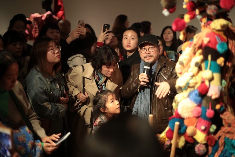 舞台上、影视剧中,叶锦添打造了无数经典形象,但他本人无论是平日还是镁光灯下,却总是戴着鸭舌帽和围巾,衣着并不出众。见到叶锦添是在今日美术馆《叶锦添:全观》艺术大展开幕当天,致辞结束后,他亲自为大家进行导览,细致地讲解了他的艺术创作理念。