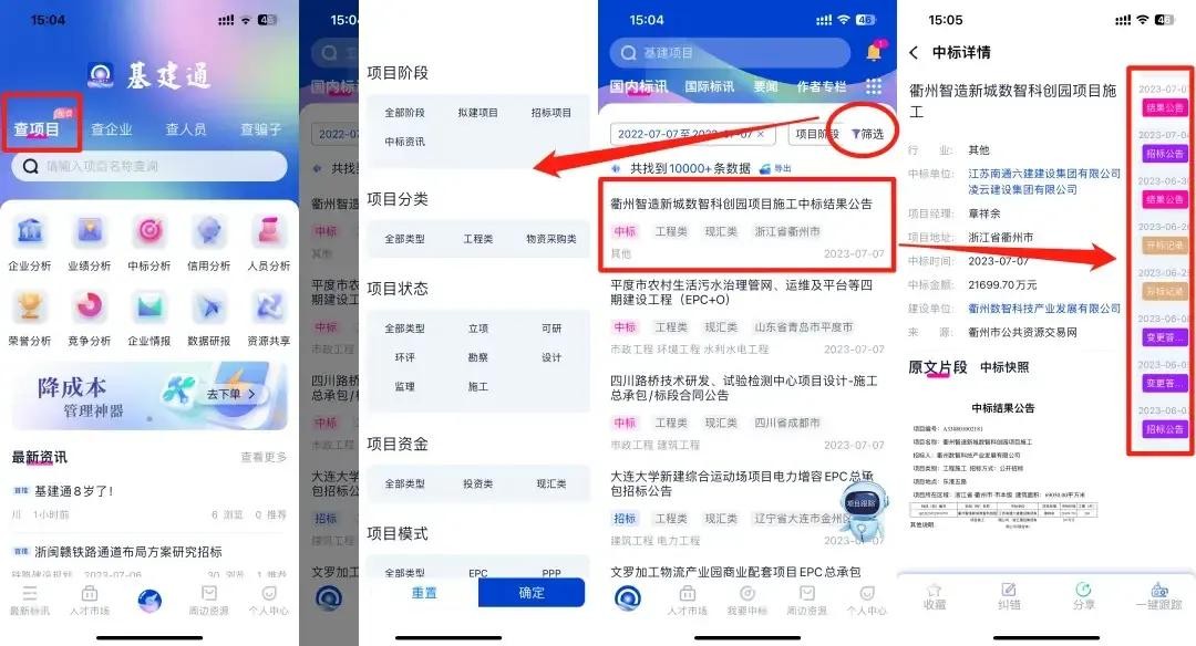 设置筛选条件,包括项目阶段、分类、状态、资金、