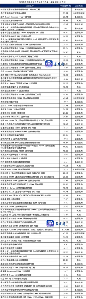 同时,根据基建通大数据(cnsuido01)统计,2023年中国电建新签了 77 笔 5 亿+大单,累计合同额达 1463 亿元,成为中国电建大单经营是主要市场。主要签约的项目清单为: