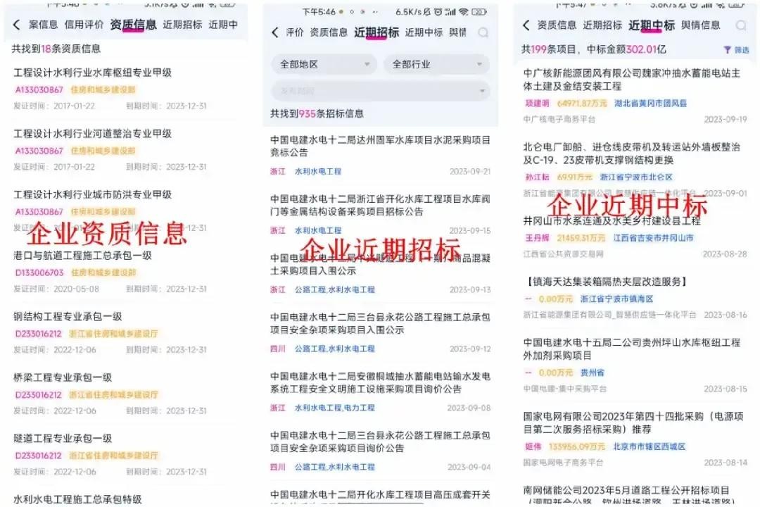 包括企业人员、荣誉、诚信、业绩、信用评价