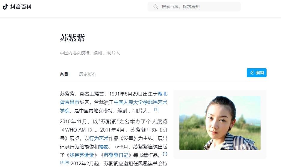 信息来源:苏紫紫——抖音百科