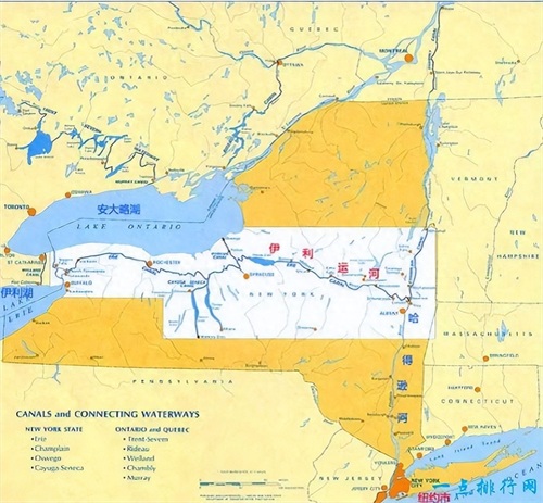 1.美国建国初期的交通状况为纽约州开凿运河提供的机遇