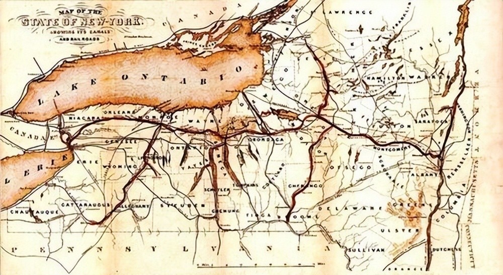 伊利运河的通航是美国区际贸易发展中的划时代的里程碑。1816年,德威特克林顿在他起草的《纽约市民支持开凿联结哈德逊河至大湖区运河的请愿书》中称伊利运河将成为“世界上最能创造和汇聚财富的运河”。克林顿的预测大体上是正确的,至少在美国内战爆发以甜,伊利运河全线通航后产生的经济效益和社会效益的确让世人震惊。面对“西进运动”路途中滚滚人流,在美国铁路修筑高潮尚未来临前,开凿伊利运河,进一步挖掘内河航运的运输优势也就成为一个自然的选择。