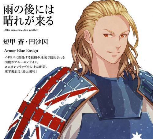 蓝色旗面,靠旗杆侧上角有英国国旗