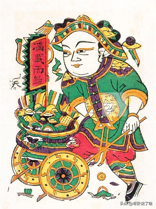 清代朱仙镇套版年画《黄金万两满载而归》