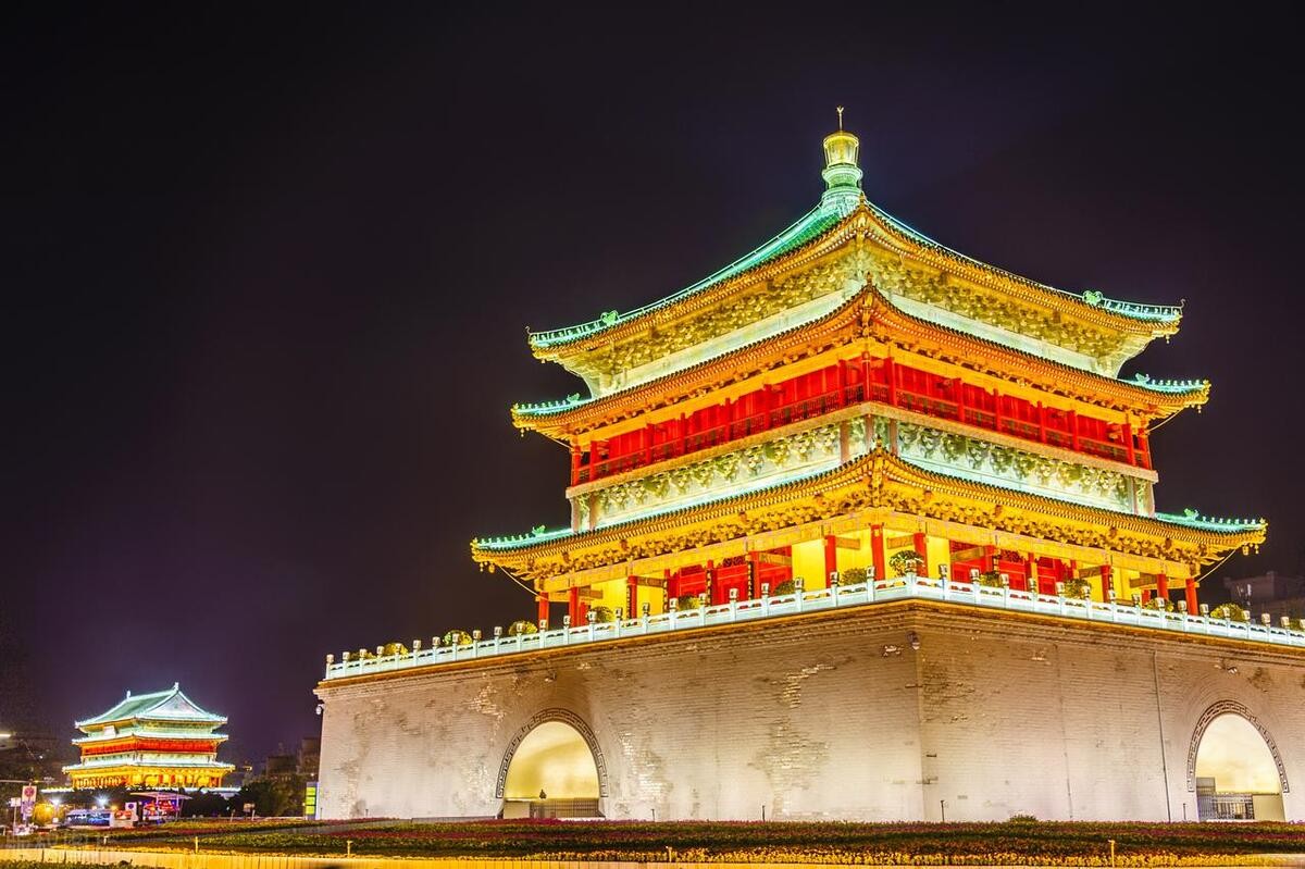 西安钟楼,是西安古城的地标之一,也是中国现存钟楼中形制最大、保存最完整的一座。宏伟壮观的建筑,钟楼的夜景十分迷人,华灯璀璨,拍照打卡超级出片,到西安游玩一定不要错过!