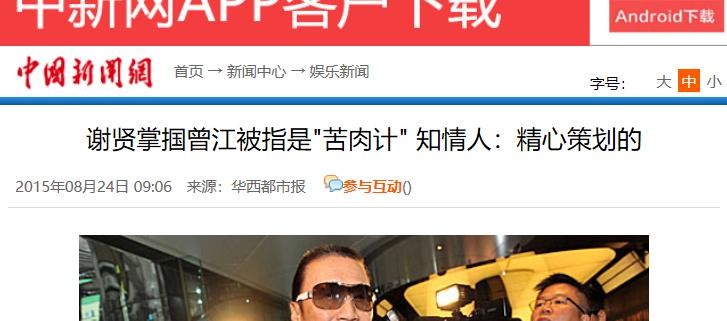 中国新闻网《谢贤掌掴曾江被指是"苦肉计" 知情人:精心策划的》
