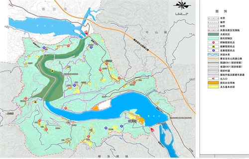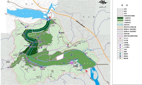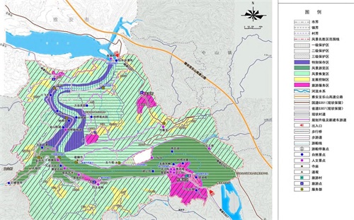 功能分区:基于资源特色和价值,将风景区划分为特别保存区、风景游览区、风景恢复区、发展控制区和旅游服务区。