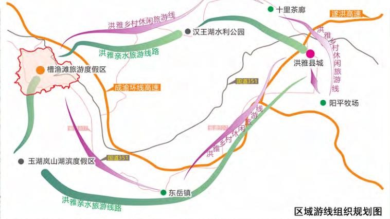 槽渔滩位于省域风景体系中的第一圈层发展环线上,是古蜀文化单元、天府源流单元、中山秀峰单元之间的过渡区域。槽渔滩整体生态环境较优,具有较高的休闲度假、运动娱乐的优势,是省域面积较小的水库型风景区的典型代表。