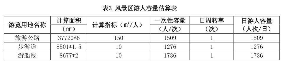明确风景区的日游人容量和年容量,为4521人/次和271万人/次,确保游客体验和景区承载力的平衡。