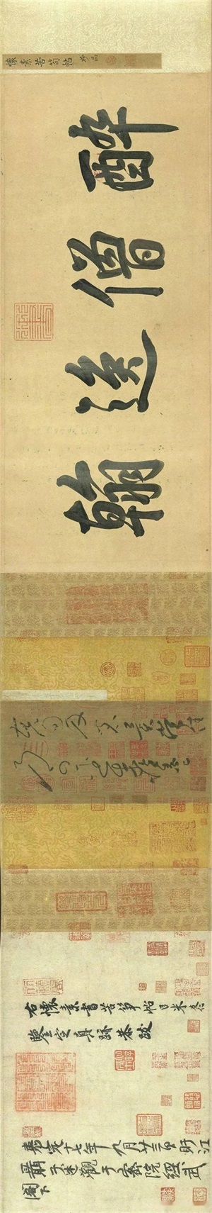 看到上面的字后,万育仁感觉卷面字迹秀逸逼人,非寻常之作,又看到卷头上还钤有圆形的双龙印、政和、宣和的骑缝印,历史基本功扎实的万育仁一看到这些印章,立马认出这些都是宋徽宗的收藏印章,他知道,这张卷起的“废纸”绝对没有那么简单。