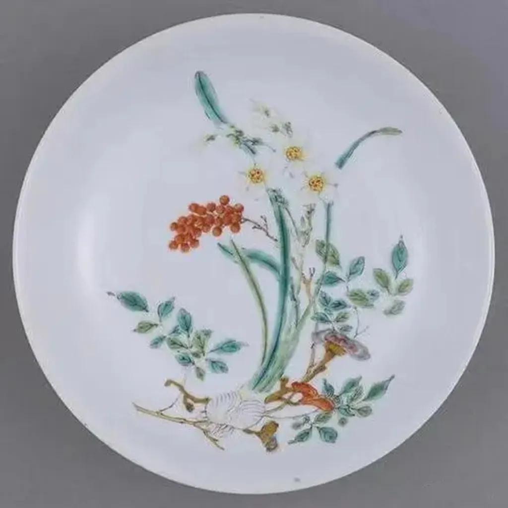 清雍正粉彩灵芝水仙纹盘