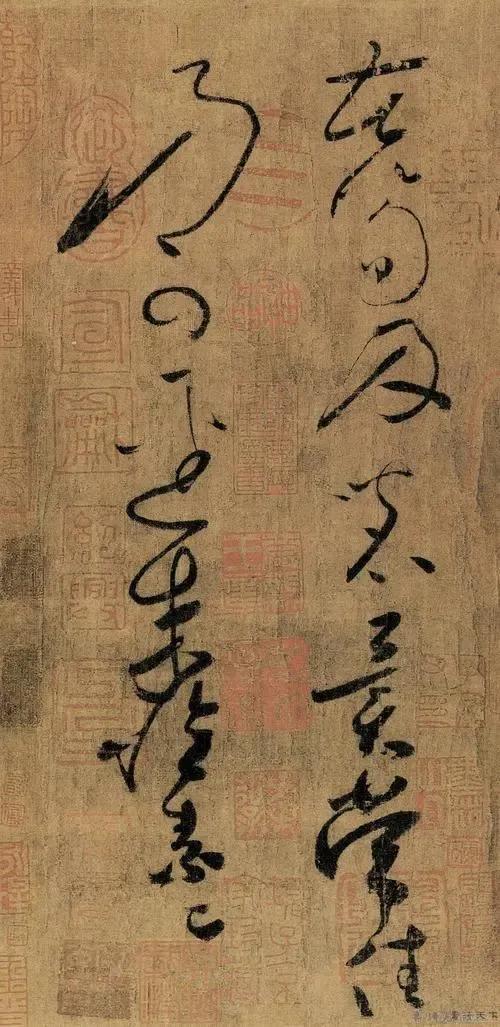 据说张旭每大醉呼叫狂走乃下笔,或以头濡墨而书。既醒,自视以为神不可复得也。世呼张颠。怀素也曾一日九醉,时人常呼之为醉僧。他曾在寺内粉壁长廊数十间,每因酒后小豁胸中之气,便提笔急书于粉墙之上,其势若惊蛇走虺,骤雨狂风;满壁纵横,又恰似千军万马驰骋沙场。为此,时人又称怀素为“狂”。说怀素之与张旭,是“以狂继颠”。后人称之为“颠张狂素”。