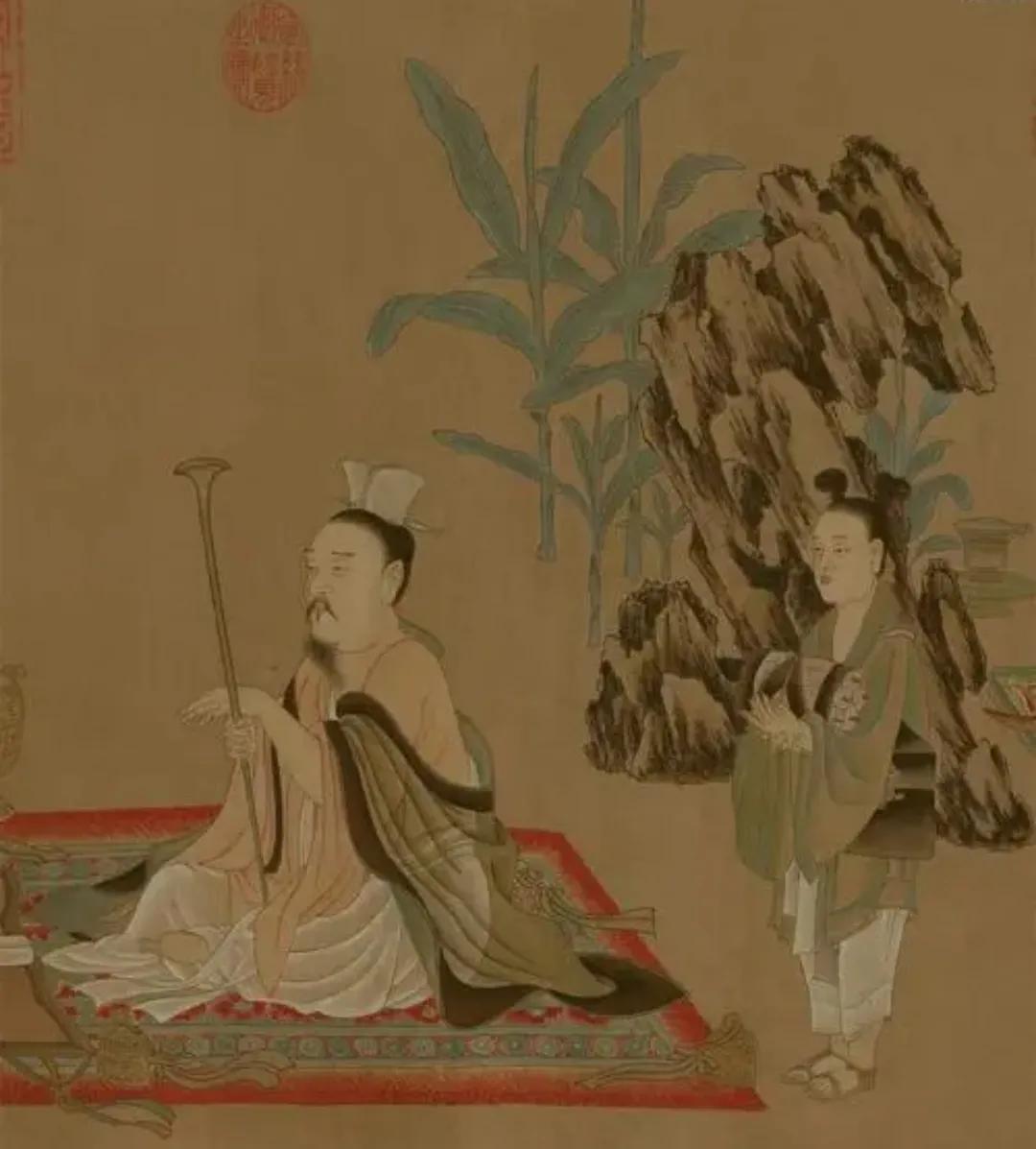 这幅图所描绘的应是魏晋时竹林七贤的故事,而我们现在看到的这幅《高逸图》为《竹林七贤图》残卷,因为图中只剩四贤,经考证是山涛、王戎、刘伶与阮籍。而嵇康、向秀、阮咸三位人物的画面,在北宋时就已缺失。