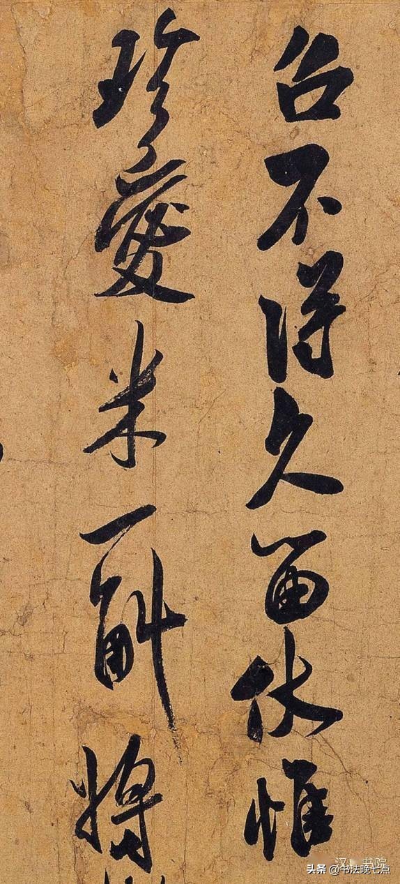 尺寸:纵28.3厘米, 横38.5厘米释文:“芾启。久违倾仰,夏序清和,起居何如?衰年趋召,不得久留,伏惟珍爱。米一斛,将微意,轻鲜悚仄。馀惟加爱、加爱。芾顿首。窦先生侍右。”