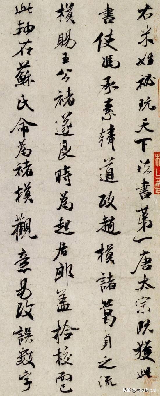 释文:“十一月廿五日。芾顿首启。辱教。天下第一者。恐失了眼目。但怵以相知。难却尔。区区思仰不尽言。同官行。奉数字。草草。芾顿首。伯充台坐。”