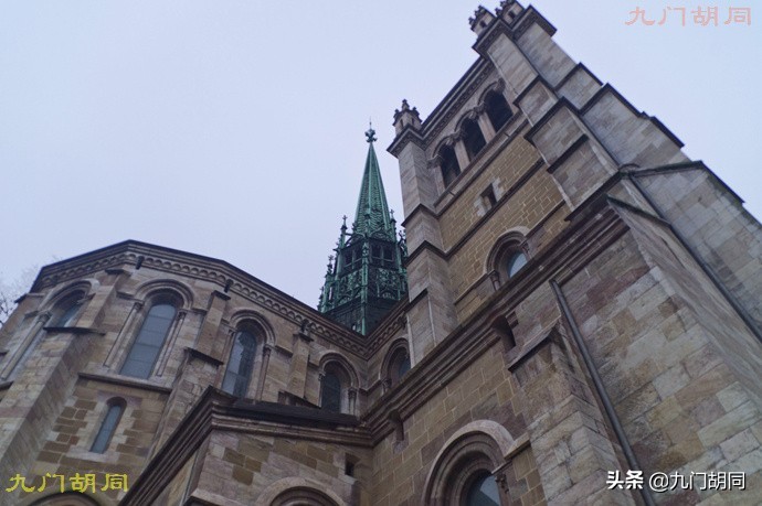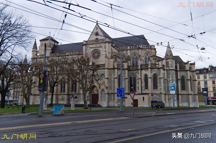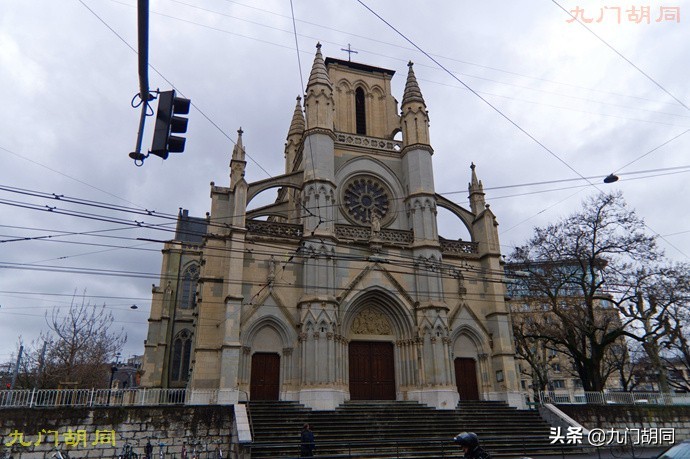 比较有意思的是,日内瓦是新教归正宗(加尔文宗)的发源地,但现在却是天主教人口占大多数。所以天主教堂也是不能少的。这是市内最大的天主教堂,日内瓦圣母圣殿(Basilique Notre-Dame de Genève),也可称作日内瓦圣母院。