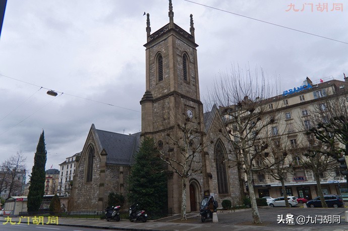 这是一座安立甘教堂,也就是英国国教圣公会教的教堂,日内瓦圣三一教堂(Holy Trinity Church, Geneva)。教堂建于1853年。