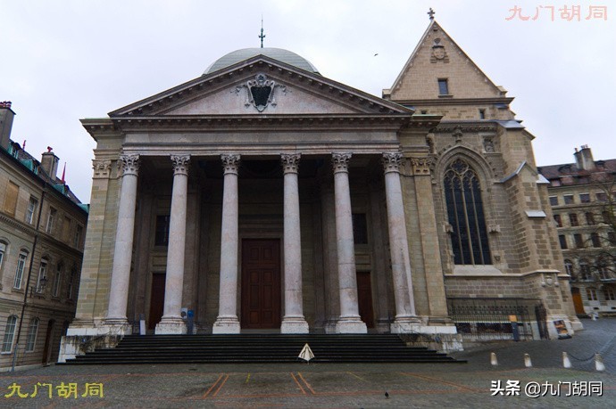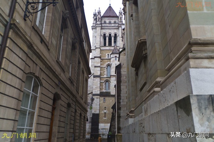 从纪念碑往南的高地上,就是日内瓦老城。老城内最高的教堂,就是加尔文二十多年的总部据点,日内瓦圣彼得教堂。