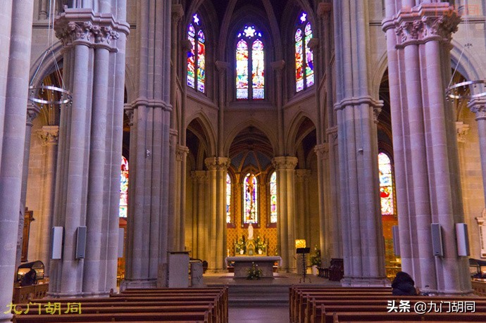 教堂内部,哥特式风格明显。