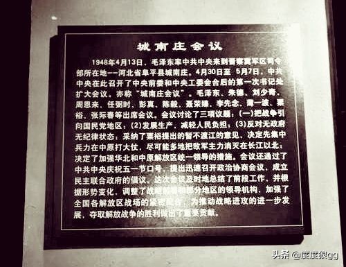 为了研究这些重大问题,党中央4月底在河北省阜平县城南庄召开了一次重要会议,还特别要求陈毅、粟裕赶来参加。“城南庄会议”涉及到华野的议题主要有两个,一是听取粟裕将军“暂不过江南进,集中兵力在中原和黄淮地区打大仗”的汇报,一是当面安排陈毅接下来的工作。