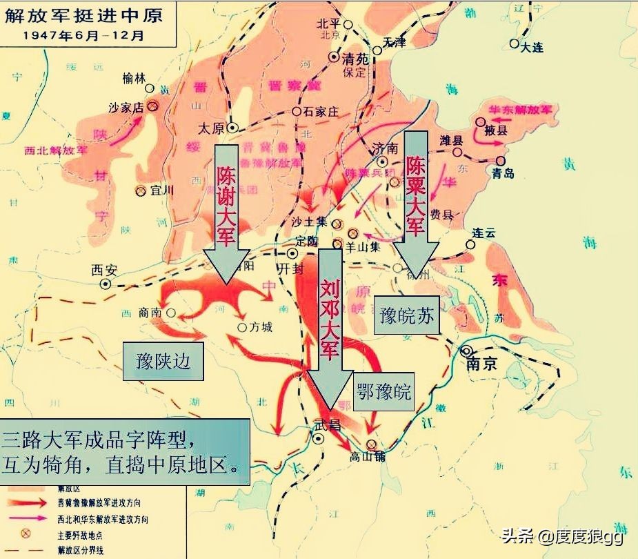 至1948年2月,刘邓大军转出大别山时,陈粟、陈谢两支大军也在中原完成了战略展开。此时的中原大地,已经成为国共两军争夺的焦点,敌我态势犬牙交错,解放区范围和战场形势都发生了重大变化,三军配合逐鹿中原的态势正在形成。