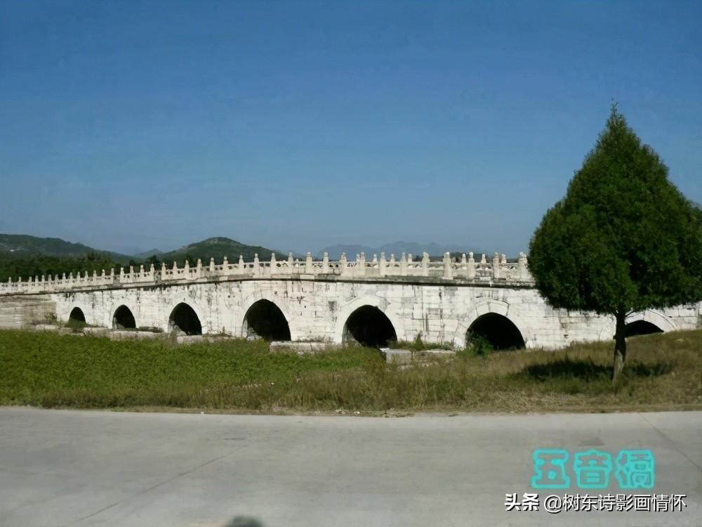 五音桥是古代汉族桥梁建筑的杰作。位于河北东陵顺治帝孝陵神道,此桥两侧装有方解石栏板126块,桥全长110.60米、宽9.10米,桥上有石望柱128根,抱鼓石4块,两边安设有方解石栏板126块,每块栏板的形状和大小相同,如果顺着敲击,会发出不同的声音,是一座能发出音响的建筑物,包罗中国古代声乐中宫、商、角、徵、羽五音,所以称此为“五音桥”。敲击时需要用木质敲击器,才能获得最佳效果。