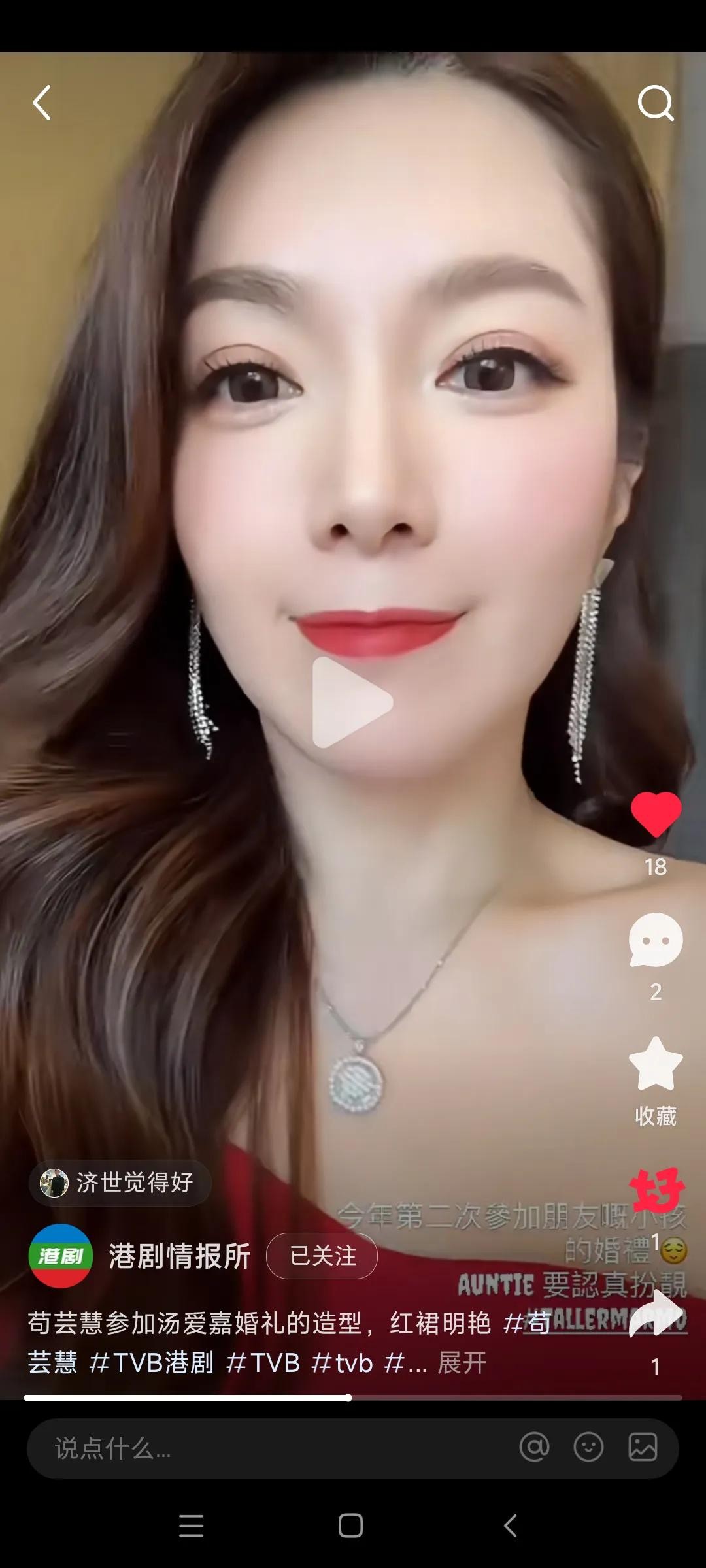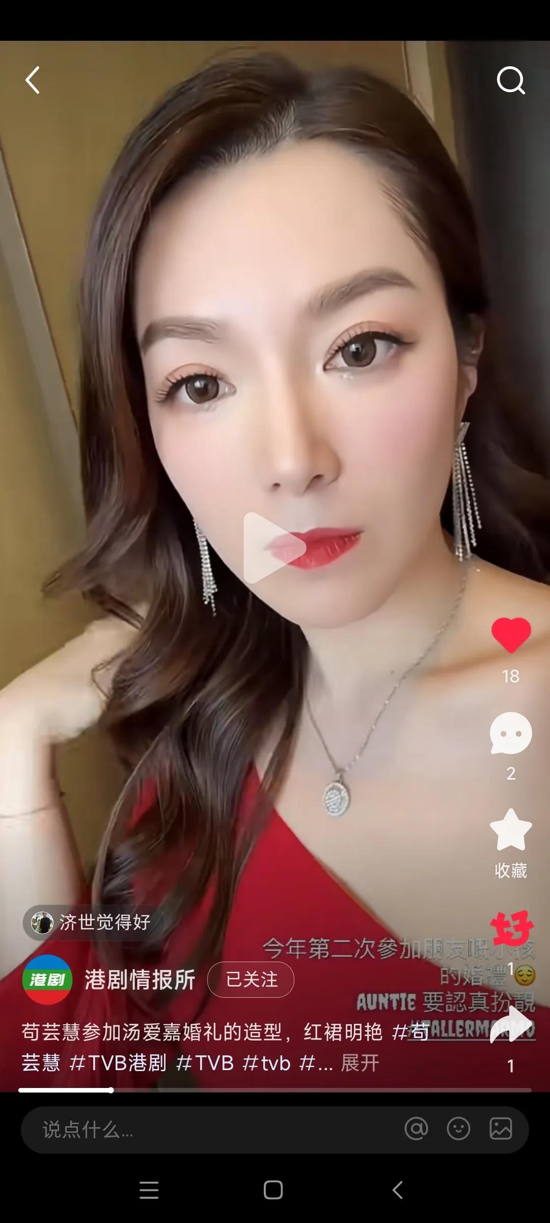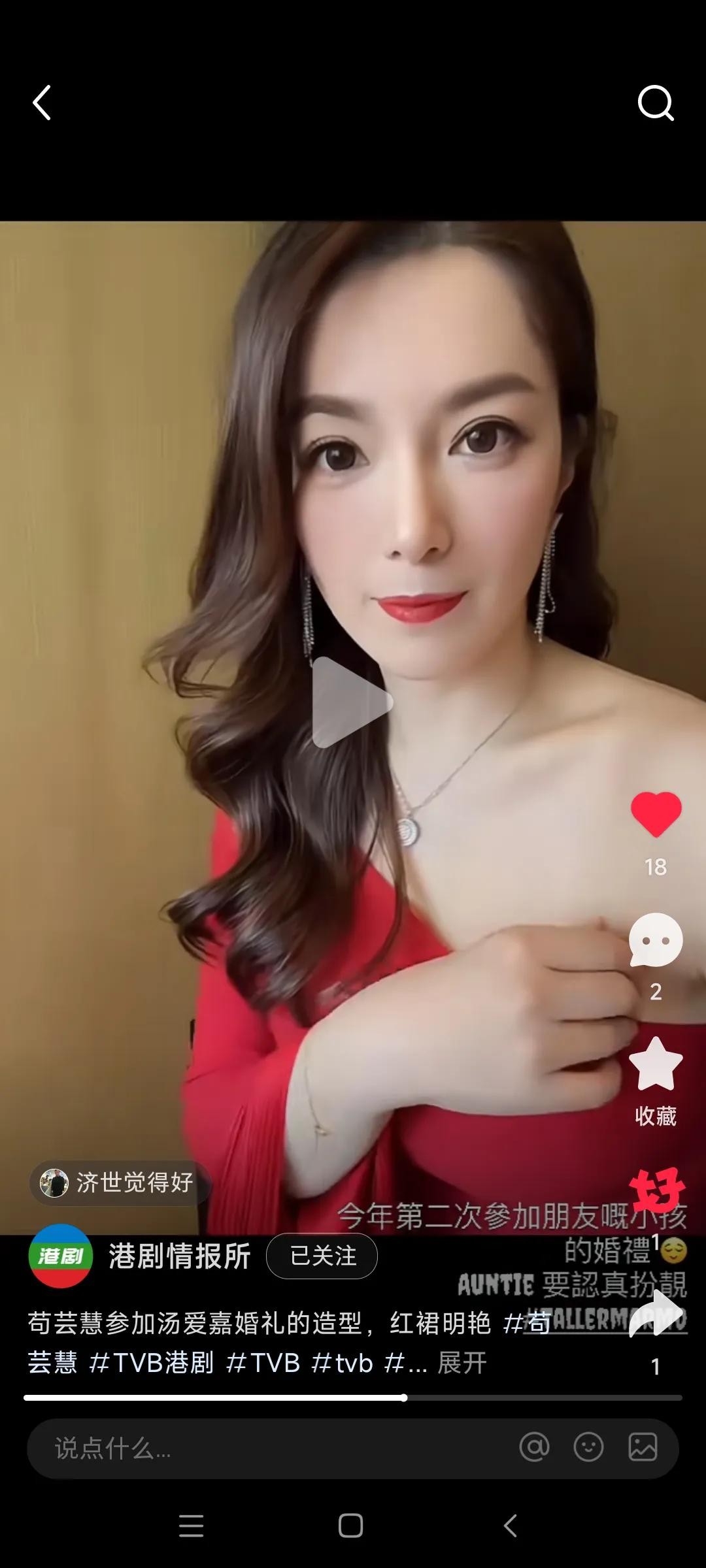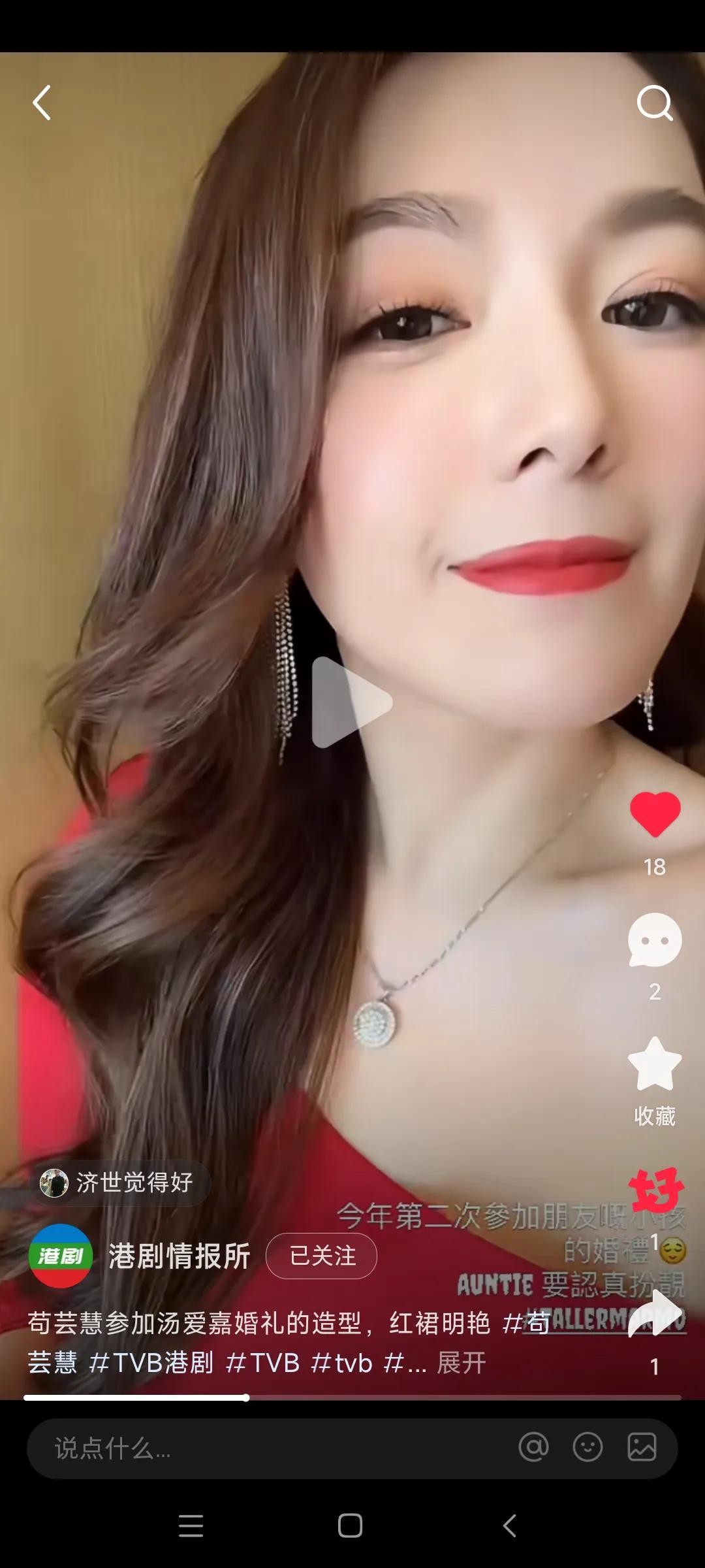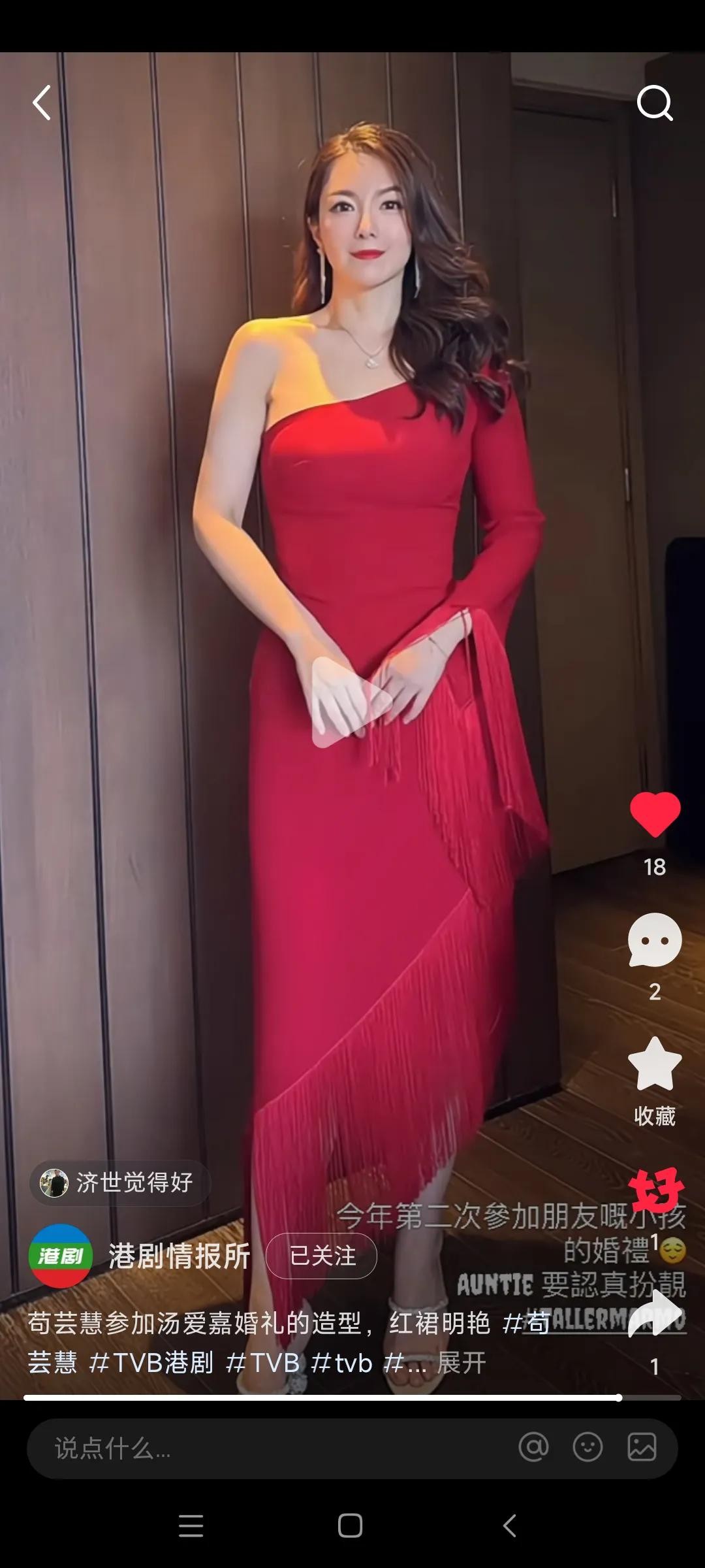 话说今天一条苟芸慧更新自我社交媒体动态,晒出自我参加汤爱加婚礼造型气质出众,身穿红色连衣裙,网友大赞妥妥女神不变引关注的新闻,引起了广大网友的关注与热议,事关今天有媒体报道说,近日,前TVB花旦苟芸慧就在自我的社交媒体上晒出了一段自我最新的视频。