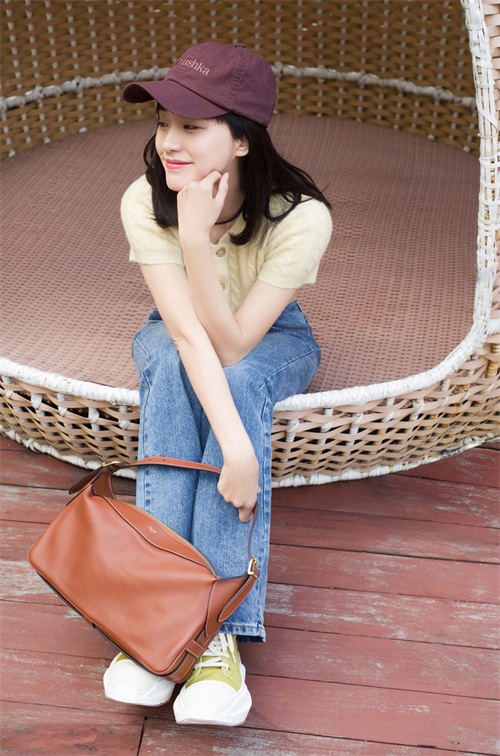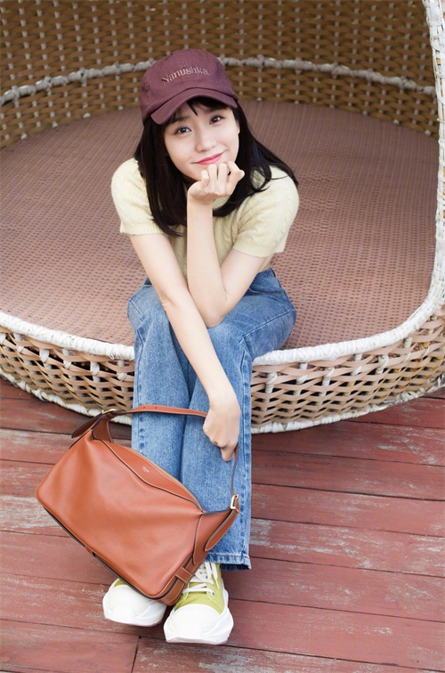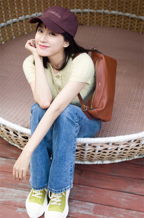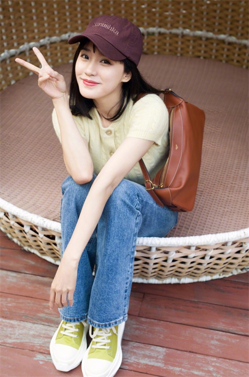 王智搭配同样清新的牛仔裤,休闲时尚又足够精致,带来靓丽的青春范,特别适合清新学院风的小仙女。