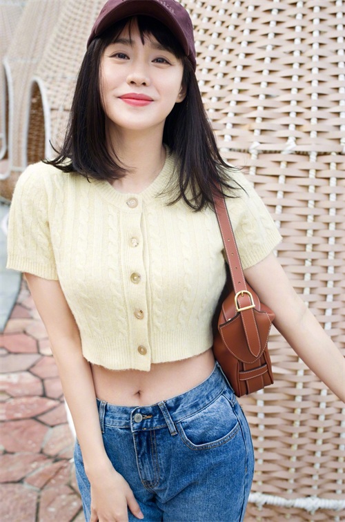 照片中的王智打扮清新性感,鹅黄色的针织露脐装十分俏皮,又A又辣。其实82年出生的王智已经40岁, 但是好像没有什么岁月的痕迹,反而越长越嫩!