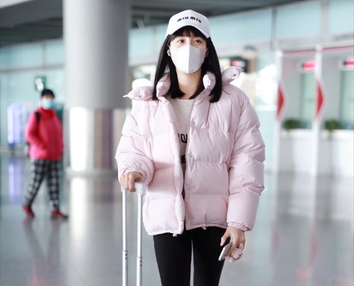 王智走机场的私服穿搭,粉色的羽绒服清新减龄,衬得脸蛋都粉嫩粉嫩的。羽绒服质地软糯舒适,软萌的质感看起来暖洋洋的,无论从时髦性还是保暖性,都是满满的惊喜。