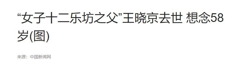 1.环球网:《女子十二乐坊之父”王晓京去世 想念58岁》