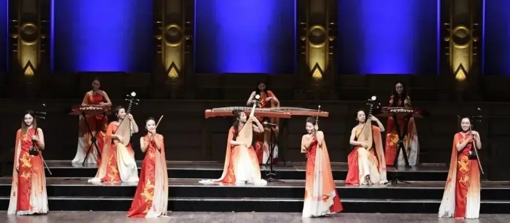 她们身穿汉服佩戴头饰,各种传统乐器汇聚在一起展现着古典优雅和热情奔放的气质,一场表演完毕,台下掌声雷鸣。